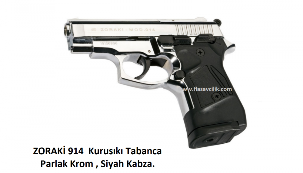 ZORAKİ 914 Kurusıkı Tabanca Parlak Krom , Siyah Kabza.